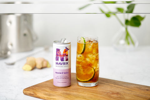Fill a tall glass with ice, rub a wedge of orange round the rim and drop it into the glass. For the ginger aficionados, cut a small slice of ginger for that extra wow. Finish by pouring over the Mavrik Non-Alcoholic Dark and Stormy.