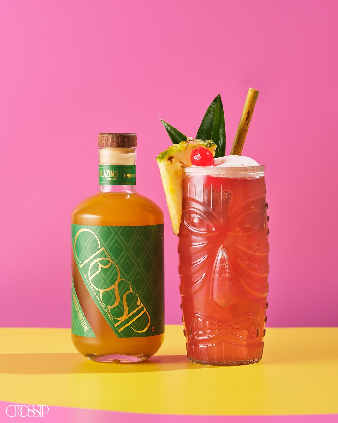 Blazing Pineapple is a tiki-style non-alcoholic spirit bursting with tropical fruit and a fiery chilli kick. Perfect for 0% Mai Tais, Piña Coladas, or Rum Punches.