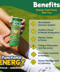 Carbonated Filtered Water, Erythritol, Fruits and Vegetables (for color), Citric acid, Natural Flavor, Organic Cordyceps Militaris Extract, Organic Lion's Mane Extract, Natural Caffeine (from Green Coffee Beans), L-Theanine, Stevia Reb A, Rosa roxburghii (fruit) and Panax notoginseng (root)
